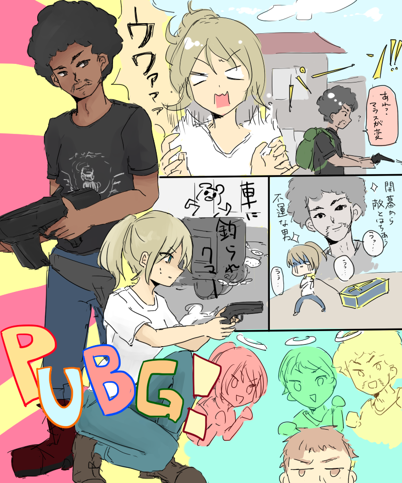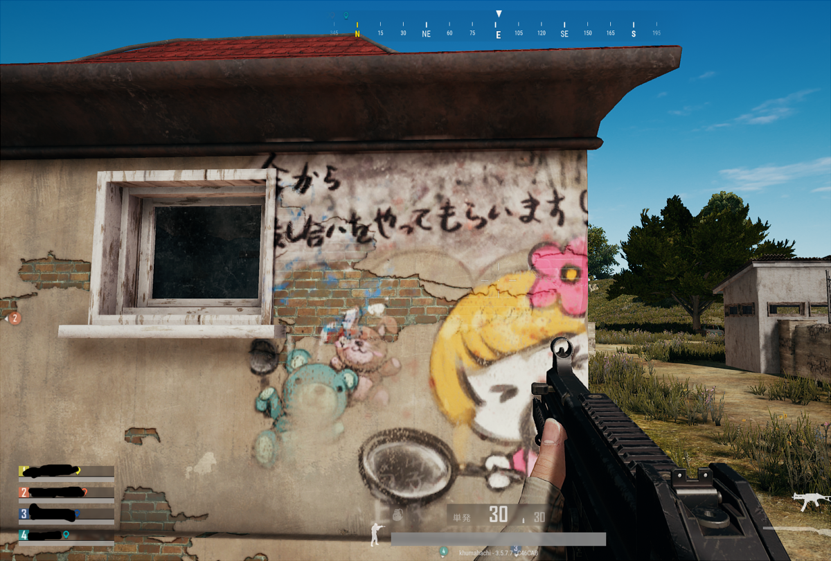 PUBG! Category:ゲーム Date:2017年12月31日 PUBG感想(二日目) 二夜連続でbitさんにPUBGで遊んでもらいました!一日目はbitさんが書いてくださったので二日目をばー! ちなみに一日目のその素敵な感想はサイトのリンクから飛んで記事までいってください!読め。全然前世から大丈夫。絵を見て記事を読むと思い出して笑ってしまうぜ…。 -----以下二日目の話----- とても疑心暗鬼を起こしている私は、マウスが不調のbitさんの発砲にめちゃめちゃキレてしまって恥ずかしいですマウスの心配しろ! 移動ばかり考えすぎて露骨に駐車されている車に乗り込んでハチの巣にされたり(その時私は死んでる)三人お陀仏になったけどみんなで最後の一人を観戦応援したり、あと私たち・・・初キルしました!照れる!二人プレイだったので初キルとった瞬間はもう一人がどこかに潜んでいないかビビりすぎて呆然って感じでしたけど思い出しにやにやしちゃう!ちなみにbitさんの初キルの雄姿は拝めなかったもたもた移動マンの私なのであった―― どこ移動するにもビビってしまう私に対して、先行どんどんしてくれるbitさんは隊長感あってかっこいいです。素敵!私もがんばってドン勝二人で一度は拝めたらいいなー。 (ちなみに今日は一人で四人チームのやつちょっとやってみたんですけど絶対激戦区に開幕いってみんなで死にました) ↓あとスクショ(重いので縮小してます)